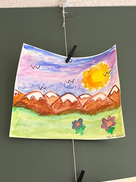 We painted, we shared stories, we danced, we laughed and laughed, we (or at least one of us—Lana!) fell out of a chair, which led to more laughter! When I stepped back from our first gallery wall I didn’t fail to note that these first paintings reflected just that: laughter.