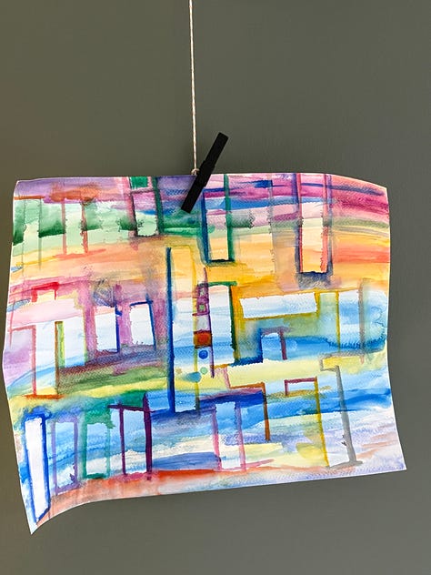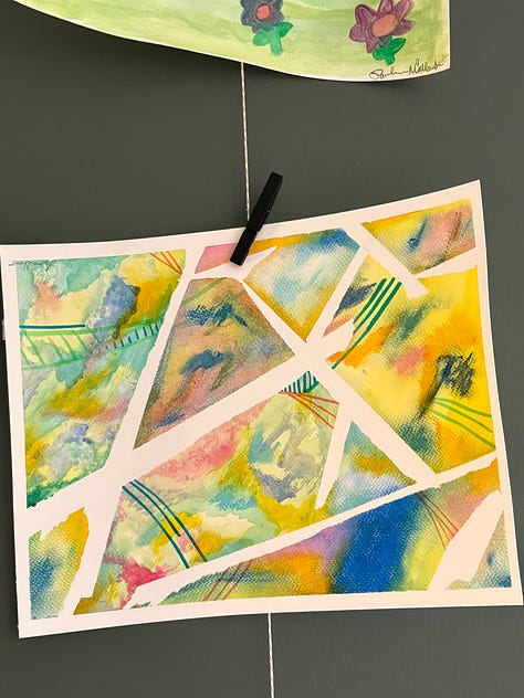 I ran around frantically gathering all the art supplies I had at hand before taking my 20-minute drive wondering, what in the world am I going to teach? Thankfully teaching wasn’t the need for this first collective of ours, just a table to be set. The prompt was simple, play with the different mediums and allow whatever feeling is bubbling up to come out in abstract art.