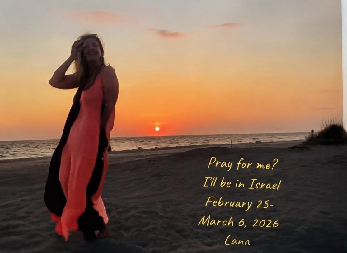 I invite you to pray for me (and with me). I leave in a few days and will be gone until March 6th. Already, there’s opposition, as tensions are increasing in the Middle East and storms brewing around New Jersey, where I fly out, but my peace remains unshakeable. I desire to be in the center of God’s will, come what may. If you would like to partner with me on this trip, especially through prayer covering (some of you have asked about financial, see note below) and be added to a WhatsApp group, let me know. I will do my best to give updates there in real time as I am able!